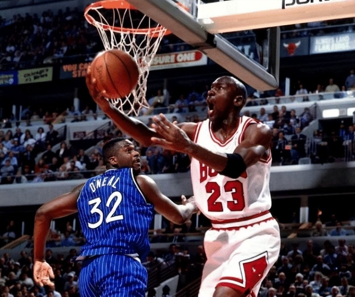 而真正让奥尼尔声名大噪的,是他在生涯第三年率队闯入总决赛,并在东部决赛中以4比1的比分淘汰了由乔丹领军的芝加哥公牛队。尽管乔丹在那轮系列赛中依旧神勇,场均贡献31分,但面对奥尼尔在内线翻江倒海般的统治力,篮球之神也束手无策。要知道,当时全联盟都在绞尽脑汁寻找击败乔丹的方法,而还处于新秀期的奥尼尔却已经做到了这一点。